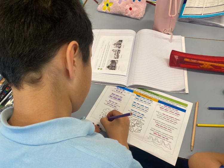 The study of English develops skills to enable students to experiment with ideas and expression, to become active, independent and lifelong learners, to work with each other and to reflect on their learning.